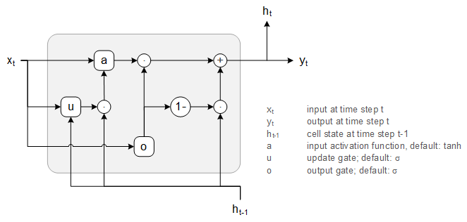 The cell is an attempt at simplifying the Long Short-Term Memory Cell. It is visualized schematically in Fig. 18.