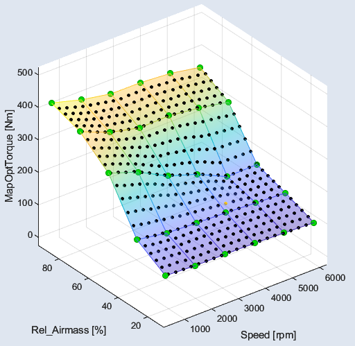 > Configure Single Element > Only Marked Data)を使用すると、動作ポイントごとの予測値と点火角度を比較する際などに、データの概要が把握しやすくなります。