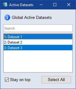 オンにすると、Active Datasetsウィンドウが常に他のウィンドウの上に表示されます。