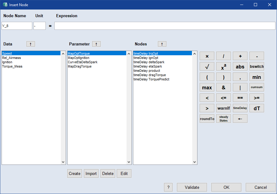 Insert Node ウィンドウ が開きます。Data 領域には、インポートされたすべてのチャンネルが表示されます。
