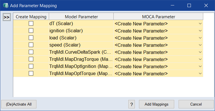 ASCET - MOCA Mapping ウィンドウには以下のエレメントが含まれます。