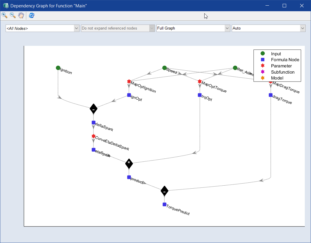 Dependency Graph for Function <Name> ウィンドウには以下のエレメントが含まれます。