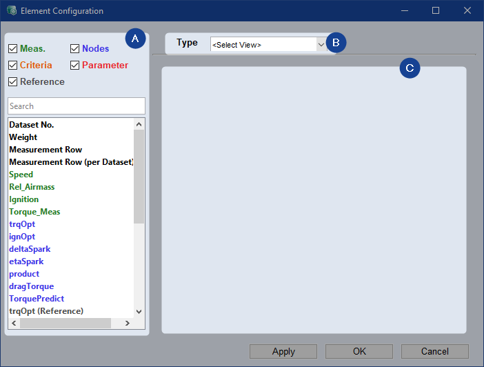Element Configuration ウィンドウには以下のエレメントが含まれます。