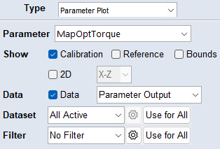 チェックボックスをオンにすると、パラメータが2Dプロットとして表示されます。ドロップダウンメニューで、X-Z 軸と Y-Z 軸のどちらを2DプロットのX/Y軸として表示するかを選択します。