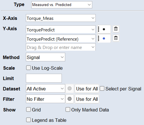 測定信号と予測信号を比較するには、Measured vs Predicted を使用します。