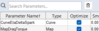 最適化できない変換パラメータセットを含むすべてのパラメータセットが一覧表示されます。