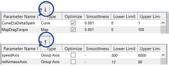 テーブルの表示形式はパラメータタイプに応じて異なります。3D/4Dキューブのパラメータの場合、第3軸と第4軸は、それぞれ別のリストに表示されます。圧縮モデルタイプのパラメータの場合、各入力はそれぞれ別のテーブルに表示されます。