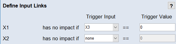 Linked Inputs ウィンドウが開き、各入力について、出力への影響をなくすための条件を決定することができます。