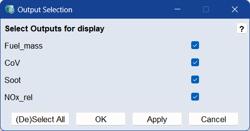 Output Selection ウィンドウを開き、モデルのトレーニングや変換などに含める出力を選択します。