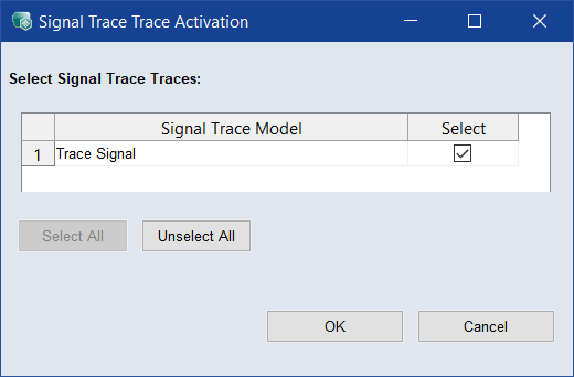 信号パラメータを変更するには、Signal Trace View ウィンドウ左側の Trace Signal ボタンをクリックして以下のウィンドウを開きます。次のウィンドウが開きます。