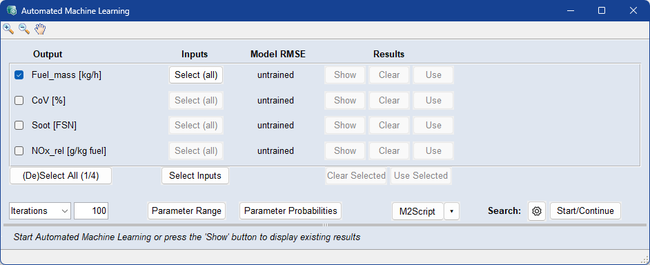 チェックボックスで選択されている出力について、自動機械学習の中間結果を消去します。Clear ボタンで、出力ごとに個々に消去することもできます。
