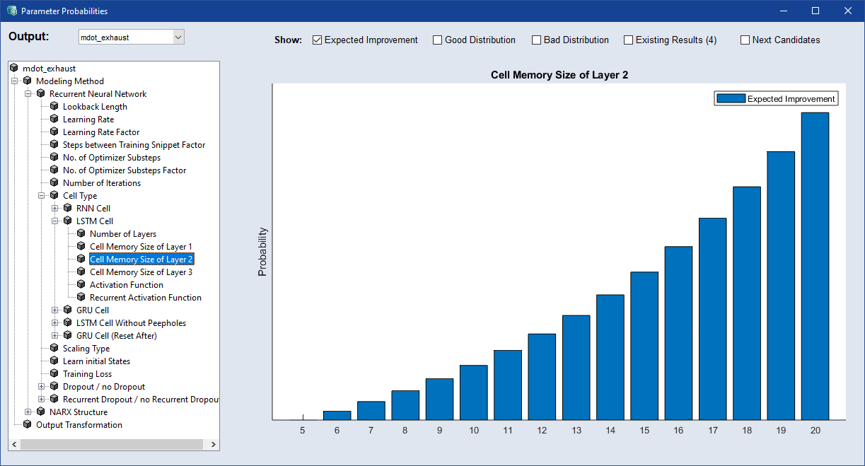 Parameter Probabilities ウィンドウを開いて、各ハイパーパラメータに期待される改善効果を表示します。確率は、モデルの学習が完了した後に表示されます。