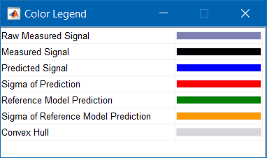 開く"Color Legend" ウィンドウ(凡例ウィンドウ)が開き、ASCMO-DYNAMICで使用される色とその用途の一覧が表示されます。
