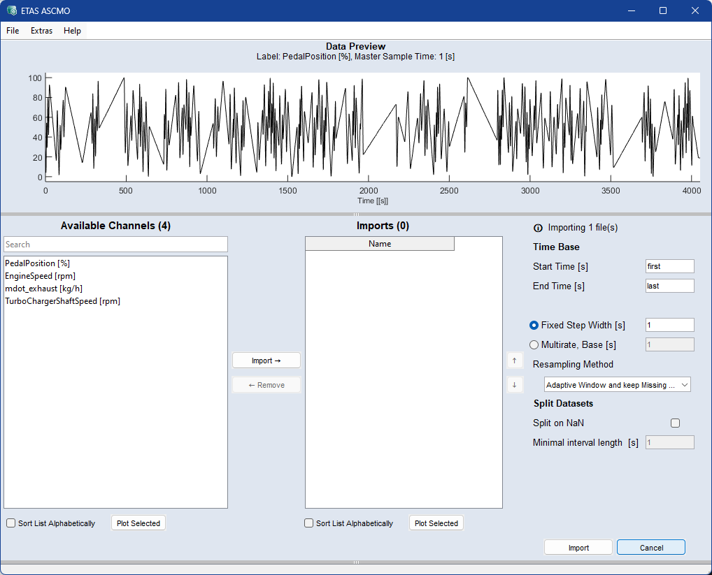 ASCMO-MOCA スタートウィンドウ > New > Import Dynamic Data