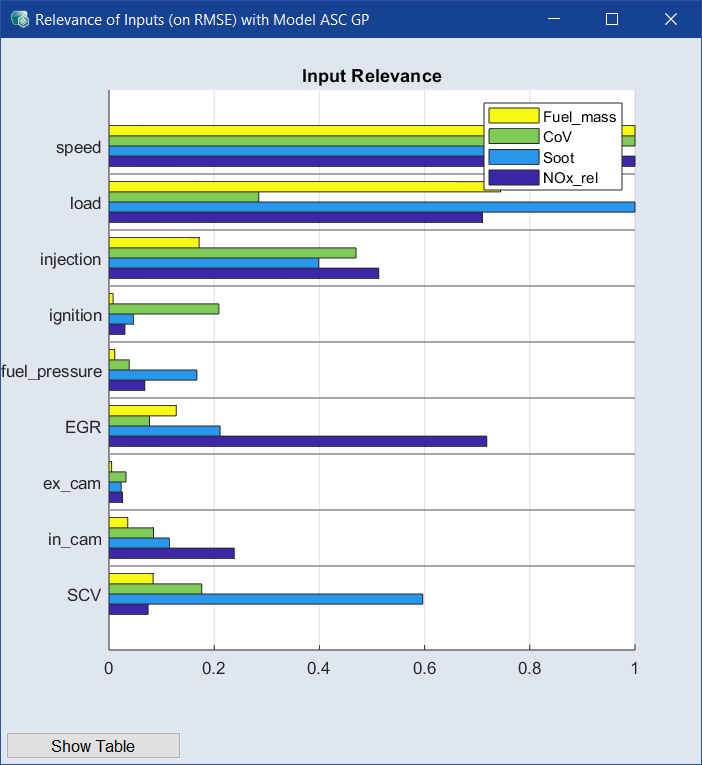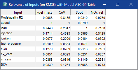 "Relevance of Inputs" ウィンドウ(ASCMO-DYNAMIC