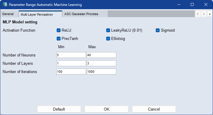 Model メニュー > Automated Machine Learning > Parameter Range ボタン