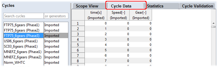 検証規則を選択すると、選択されている走行サイクルの