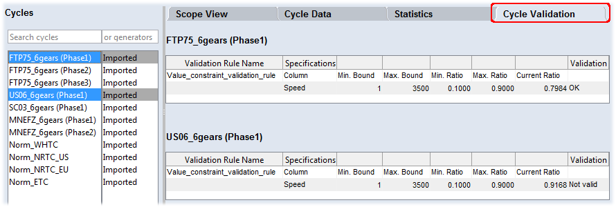 "Cycle Validation" タブ