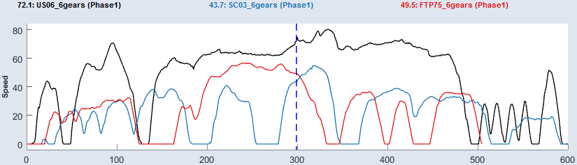 このタブには、時間軸と、選択されている走行サイクルの操作ポイント軸が