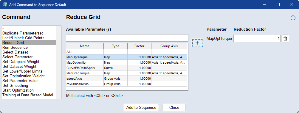 Optimization ステップ > Sequence タブ > Add/Edit Command