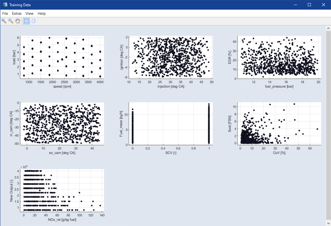 すべての囲み線のオーバーラップ部分に含まれるデータポイントを、すべてExcelファイル(*.xls*.xlsx)、CSVファイル(*.csv)、MDF3ファイル(*.dat)、MDF4ファイル(*.mf4)のいずれかにエクスポートします。これらのデータポイントは、散布図内で開く赤い点として表示されます。