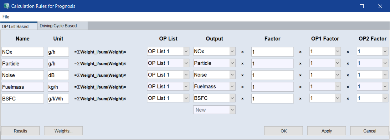 The Calculation Rules for Prognosis window opens.