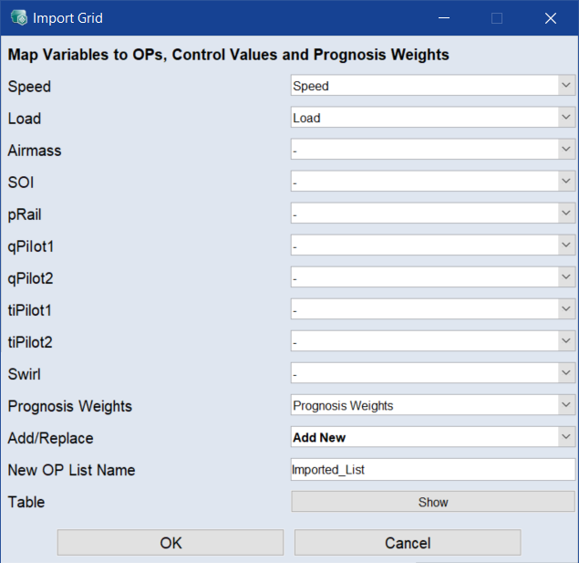 Example_Diesel_Engine_OP_Weights.xls.The Operating Point Prognosis Weights Import window opens.