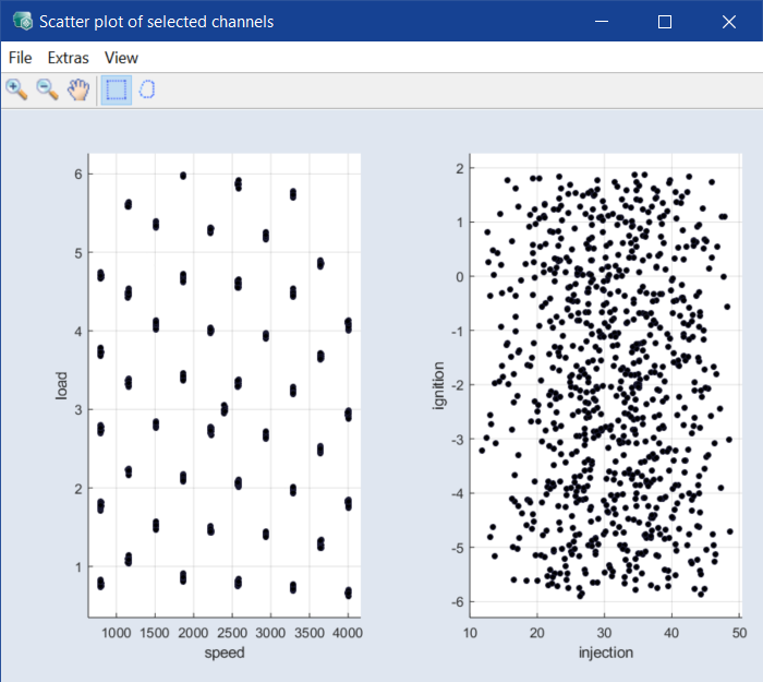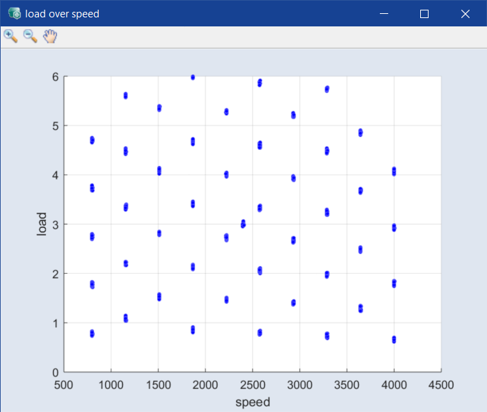 2 variables: data of one column above data of the other – e.g., load above speed.