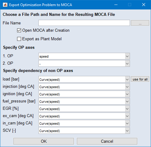 "Export Optimization Problem to MOCA" Window (ASCMO-DYNAMIC)
