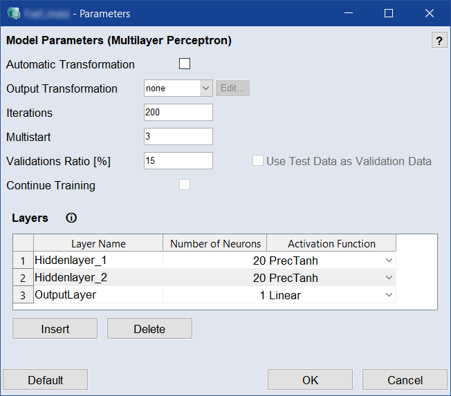 Select the transformation type of the output. Using a transformation can improve the model prediction. If the Automatic Transformation checkbox is activated, the transformation type is selected automatically. Not all transformations are available if the training data has negative or zero values.
