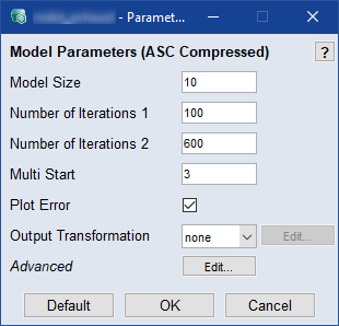 This model type allows you to limit the number of basis functions within the model (see Model Compression). The following model parameters can be specified: