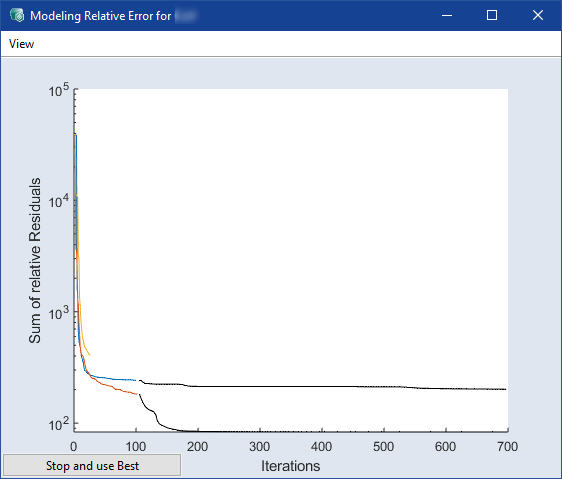 • Relative Error: Is the quotient of the error and the actual value (measured data - predicted data / measured data * 100). During the optimization, a Closedvisualization window pops up where you can manually stop the optimization and use the best result so far.