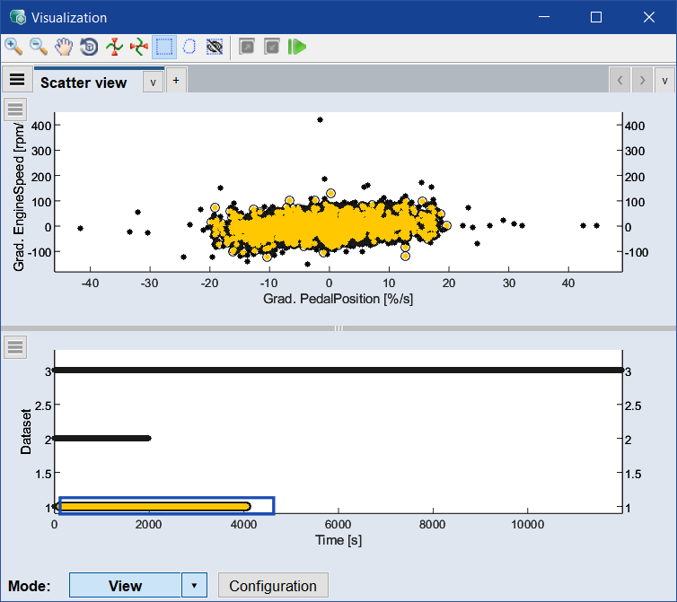 You can use the functions Data > Scatter Plot > All Data and View > Select Axes to check the distribution of the test data and its gradients.
