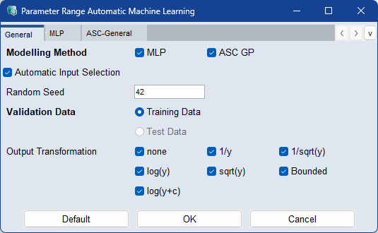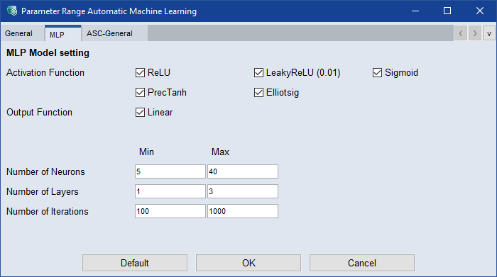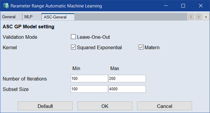 EIn the Automated Machine Learning window you can specify the settings for the automated machine learning and the range of hyperparameters. In the Parameter Range Automated Machine Learning window there are separate tabs for the