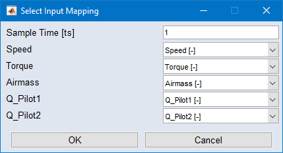 "Select Input Mapping" window opens. It lists the existing inputs, and allows to assign cycle data columns. -