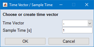 "Time Vector / Sample Time" window opens. -