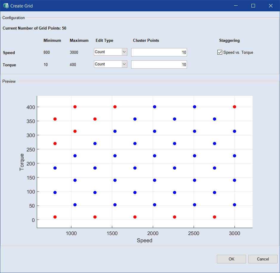 The steady state points are added to the table and the plot. The Create Grid window closes.