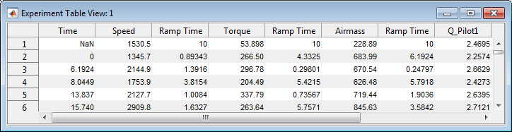 In Closedthis window, the points of the experiment plan are displayed as a table.