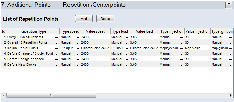 In this step, repetition points can be defined which, in addition to the points of the experiment plan, should be approached repeatedly according to specific criteria and measured, if necessary.