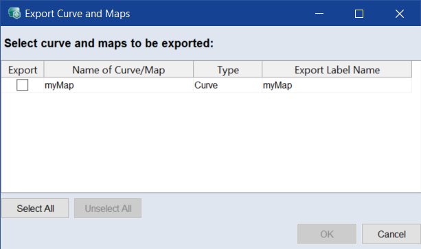 In the Export column, select the maps/curves you want to export.