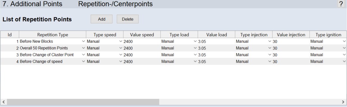- A repetition point can be used as a stabilization point during test automation or a measurement always has to be started from a specific operating point (e.g. regeneration of the particle filter before measuring).