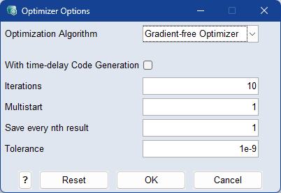 When activated, C code is generated from the function and optimization works on compiled C code. This only works if the function does not use external models. This speeds up the optimization when the timeDelay method is used in the function, in other cases it's usually slower.