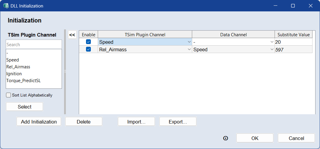 To export the initializations to a PLGN file, click Export.