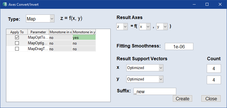 Use the drop-down list to select the type of parameter you want to convert or invert. Available selections are Curve, Map, Cube-3D, and Cube-4D.