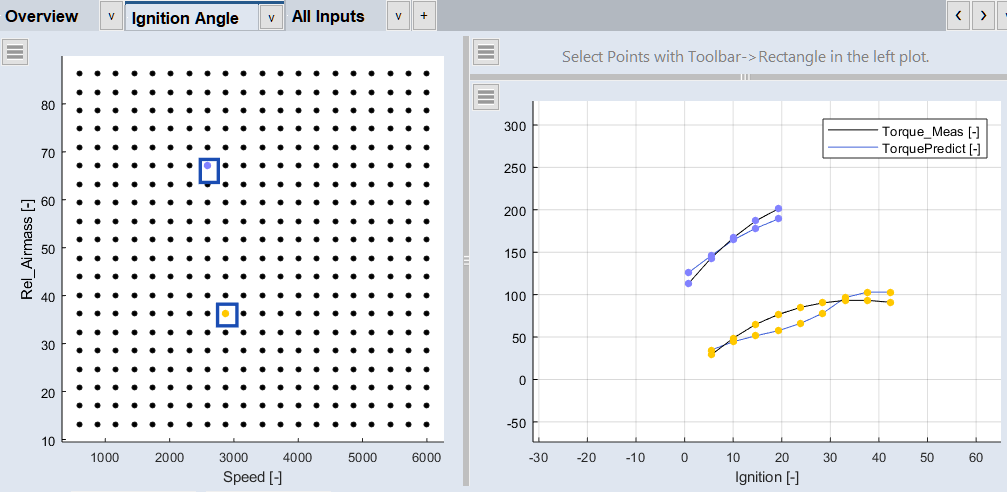 > Configure Single Element > Only Marked Data) gives you a better overview, e.g. prediction vs. ignition angle per operating point.