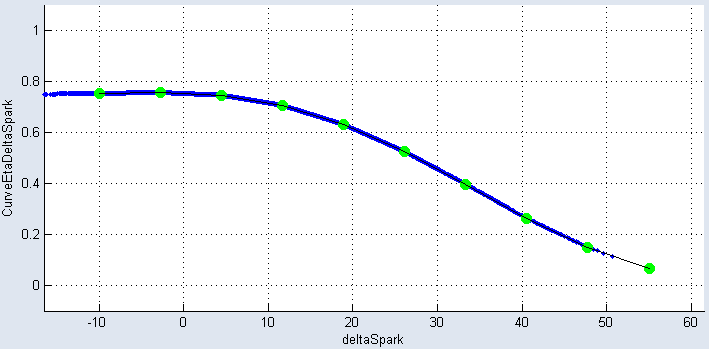 In between grid points, the corresponding Y values are calculated by linear interpolation. Therefore, the functional dependency is given by y = y(x) and a curve is stored in the form of a one-dimensional lookup table.