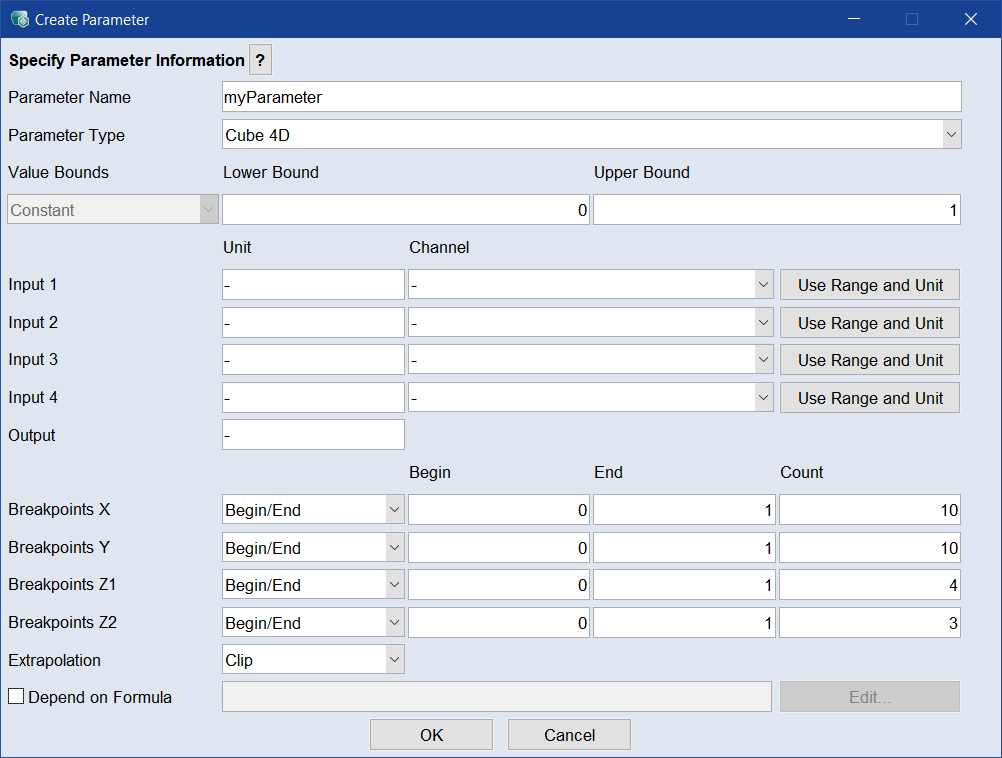 In addition to curves (one input) and maps (two inputs), ASCMO-MOCA supports also lookup tables with three and four inputs: Cube-3D and Cube-4D.