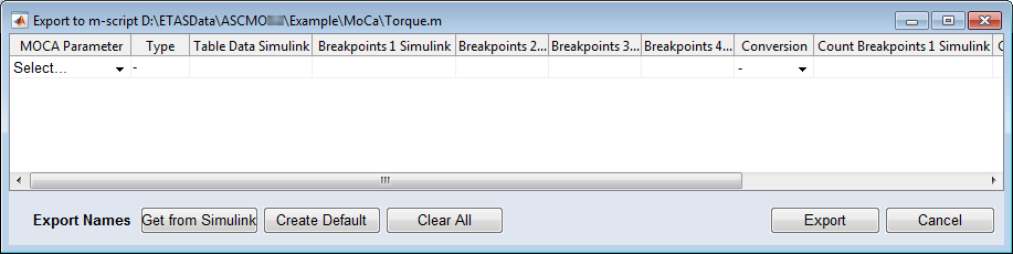 You can export the parameters in your ASCMO-MOCA project, their bounds (scalar, curve and map parameters), or both. The available export methods depend on the parameter type and on the export format; Tab. 3 lists the available methods for each combination of export format and parameter type.