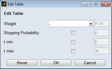In the table you can edit the points/cells in the columns ("<Input x>", "<Input y>", "Weight", "Stopping Probability", "t min", "t max").
