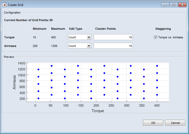 "Create Grid" window opens, where you can redefine the steady-state points grid.